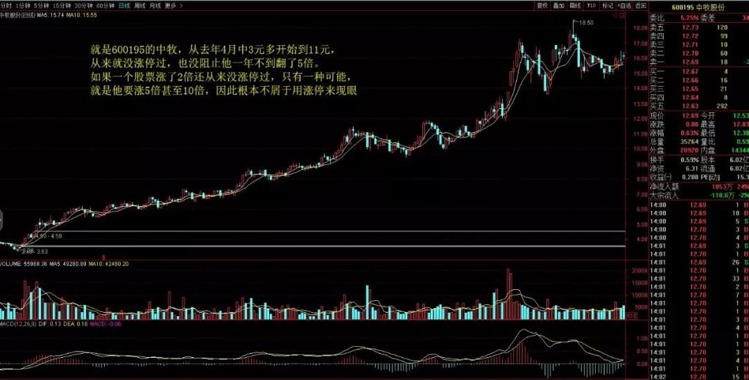 1. 对于中线,如果一只股票涨了2倍还没涨停过,那就要重点关注,因为它要涨更多,根本不屑于用涨停来吸引眼球。