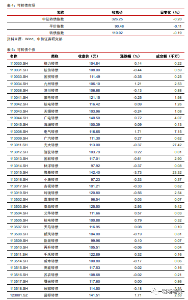 短期内市场风险偏好或遭遇来回冲击,且热点及讨论度较前期明显减弱,因此我们依旧强调切换至中长期视角,从时间换空间的角度进行布局。在前几周周报中我们对此已经有过讨论,只要基本面给力高溢价率并不是不可逾越的障碍,近期表现强势的玲珑、水晶转债等标的也是从高溢价率过程走到现在,且当前溢价率也并不算低。倘若个券溢价率偏高,则需要对正股有更为精确的判断。我们建议目光更为长远,毕竟趋势可能比短期波动更好的把握。我们在上周周报中强调了对业绩稳定、高分红类板块的重点关注。部分高价标的可以适当获利了结。
