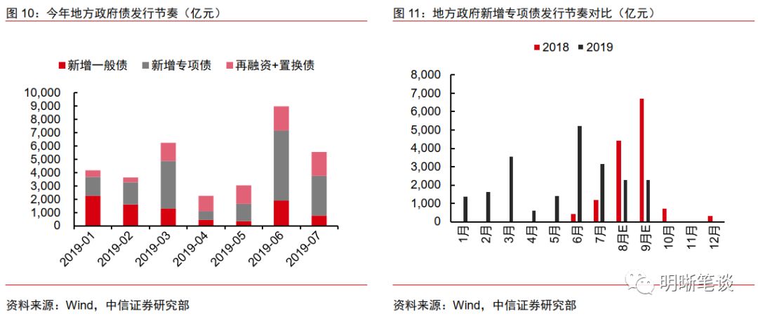 剩余地方债的供给将主要集中在8、9月份。根据2019年政府工作报告,今年拟安排地方政府债券3.08万亿元,其中一般债券安排9300亿元,专项债券安排2.15万亿元。财政部部长刘昆曾在今年3月24日表示:“加快地方政府债券发行使用,争取在9月底前将全年新增地方政府债务限额3.08万亿元发行完毕。”