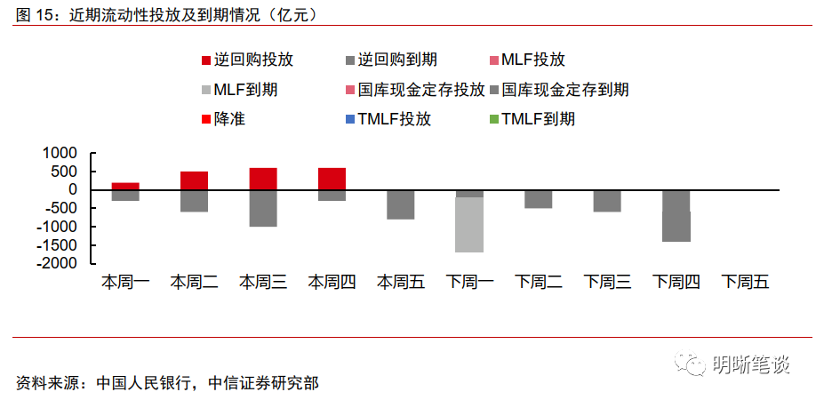 本周五、下周一到下周四将分别有800亿、200亿、500亿、600亿、600亿元7天MLF到期,同时下周一还有1490亿元1年期MLF到期,MLF利率是否变化值得重点关注。