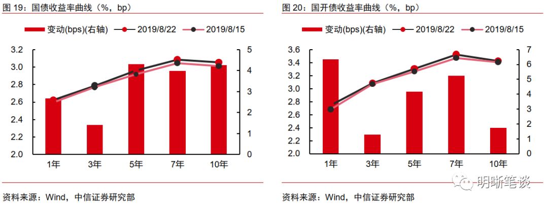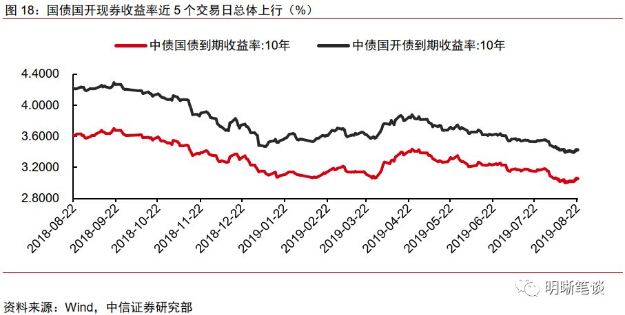 二级市场方面,上周五至本周四,10年期国债收益率大体呈上行趋势。10年期国债活跃券190006的收益率从上周四的3.005%上行至本周四的3.0525%,10年期国开活跃券190210收益率也从上周四的3.3975%上行至本周四的3.422%。