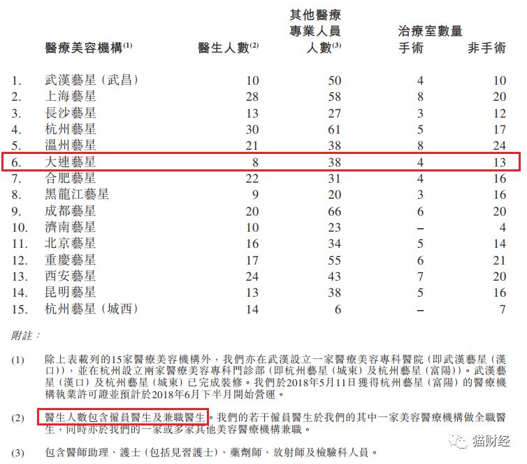猫妹注意到,据艺星医美在招股说明书披露的经营状况来看,大连艺星是医生人数最少的下属医美机构,仅有8人,勉强超过卫健委要求,其他医疗专业人数也不过38人,配有的手术室仅4间。