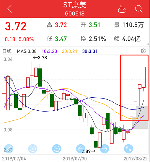 从交易层面来看,8月19日-8月21日的成交额分别为6797万元、2885万元、7.53亿元,今日上午成交额已超4亿元。这几日介入ST康美的资金超12亿元。