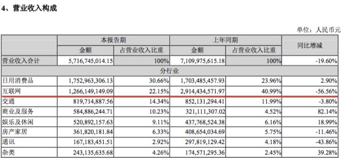 从收入构成来看,主要是公司的互联网客户的收入出现大幅下滑。2019年上半年,公司来自互联网客户的收入只有12.66亿,比去年同期的29.14亿,下降了16.48亿,下降幅度高达56.56%。