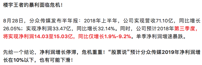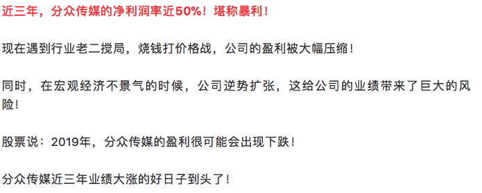小股在一年前,预判了分众传媒2019年的业绩暴雷。《分众传媒2018年中报解读:业绩滑铁卢,暴利危机》