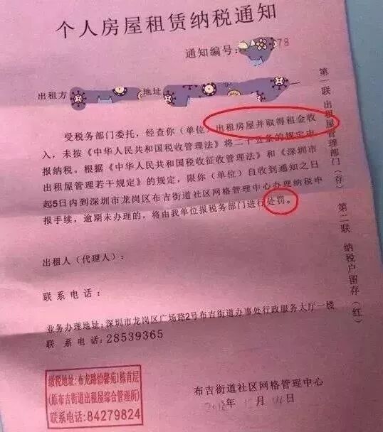 就在去年,深圳一街道就已经出过催缴租金税收的通知单了。