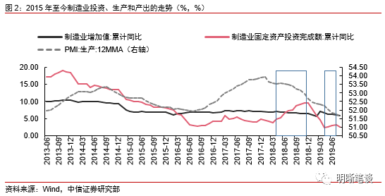 总体来看,2018年4月-12月与2019年4月-7月这两个时段中的制造业投资回升有一定的内在原因,那工业增加值的走弱又是为何呢?