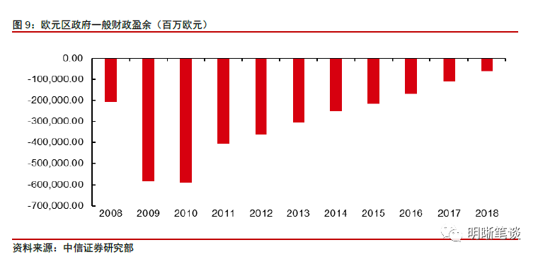 欧元区只有统一的欧央行,却没有统一的财政部,使得欧央行和各国财政部门缺少配合。QE的钱大部分流入各国的国债,但是各国的财政赤字规模一直在缩小,政府不愿意新增更多的债务去促进经济发展,因此欧央行的资产购买计划只是单纯的压低国债的收益率,以及和其它的经济部门争夺优质的无风险资产,造成优质金融资产价格的上涨,加重贫富差距,资产价格的上涨反而吸引资金进一步脱虚向实,效果适得其反。