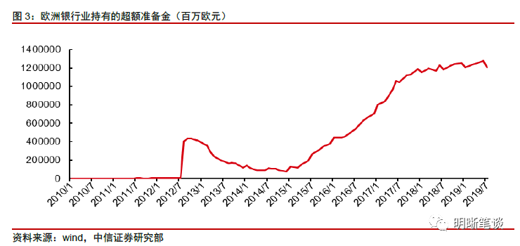 此次分层利率的实施旨在减小负利率政策对欧洲银行业盈利能力的损害。欧洲央行货币政策工具箱新增“分层利率工具”。随2015年3月欧洲央行开启资产购买计划,欧元区银行业存放在欧洲央行的准备金总额便不断上升——银行需要为超额准备金支付0.4%的成本。截止2019年7月30日,欧洲银行体系共持有超过1.2万亿欧元的超额储备,折合约超过48亿欧元的准备金持有成本,这对欧元区银行的盈利能力是很大的损害。日本早已实行三级准备金利率体系,以2015年各金融机构准备金余额均值为界限进行新老划断,对新增超额准备金实施负利率。欧洲央行本轮分层利率政策的详细细则尚未完全公布,但欧洲央行的核心政策目标是通胀稳定而非银行盈利,本次选择采用分层利率可能会被市场看做负利率将长期延续的一种表现,未来货币政策正常化可能有所影响。
