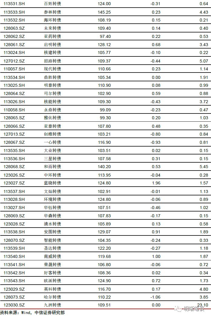 稳健弹性组合建议关注蒙电转债、水晶转债、玲珑转债、启明转债、蓝晓转债、华森转债、蓝思转债、中鼎转2、中来转债和银行转债。