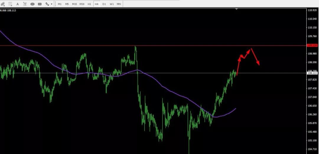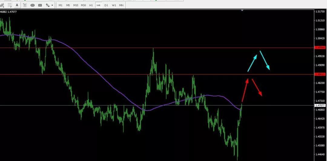 4小时级别,在144日均线之间缠绕,上方压力做空,下方支撑做多。