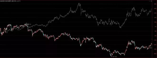我们再来看看,市场风格的情况,2016年11月开始,在每周加速发行新股、新股配售制、外资加速流入情况下,市场出现严重分化,上证50和创业板综合指数出现极端的两极分化,从上面2016年至今的上证50和创业板综合指数叠加可以明显看出,两个指数出现明显的剪刀差,上证50持续震荡上涨,创业板则单边持续下跌,上证50和上证指数为代表的蓝筹股走出了局部牛市,而创业板走出深度熊市,直到2018年2月开始整体下跌,即便2018年2月至10月的整体下跌,依旧是上证50更抗跌。