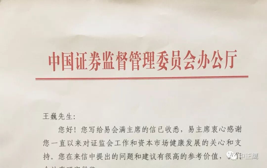 - 近十几年来,笔者都会给当值的证监会主席写信并提建议(除刘士余外),此文是发给易会满主席的三篇建议文章之一(删节版),易主席还算比较重视,委托办公厅回复表示感谢,这也属于证监会长期以来与投资者之间的良性