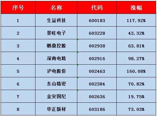 都是做5G“印制电路板(PCB)”的,往前数这一个半月的时间里,5G里面最大利好,就是“印制电路板”。随着大盘的反弹,它们涨得更高、更快。