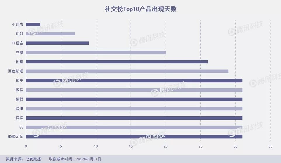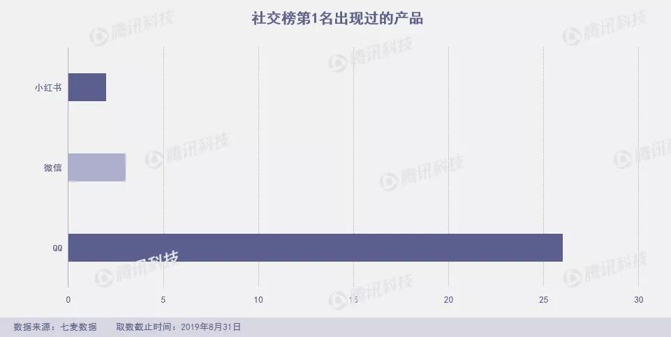 QQ、微信和小红书3款产品占据社交榜第1名。
