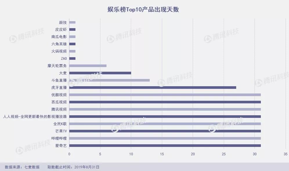 拼多多(31天)、抖音短视频(29天)、西瓜视频(22天)。