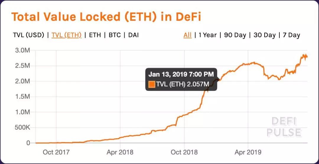 同时,锁定在DeFi中的ETH价值也在不断上升,并不断创下历史新高。见下图: