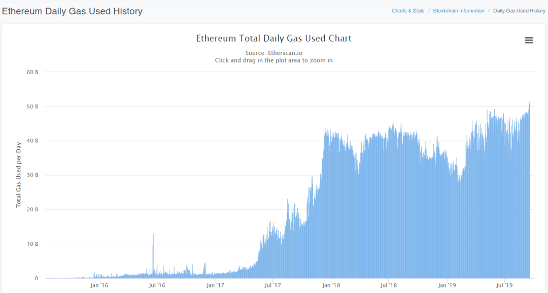 今日,ETH市场价格突破200美元大关,引起一片哗然。与此同时,以太坊网络的Gas日消耗量也创下了历史新高。见下图: