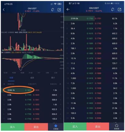 所以,无论是因为大矿工的对垒而导致的币价阴跌,还是大矿池的刻意做空,严格来说都没有那么糟,特别对于想要长期持有GN的人来说,不是坏事。甚至可以更有期许,毕竟”蹲地越深,跳地越高“的后续发展也时常可见。在跌至最低价的时候,我们发现,有一个超级大买单在顶着,疑似某个大庄在护盘,不难看出已经有大资本开始低价位入场了。