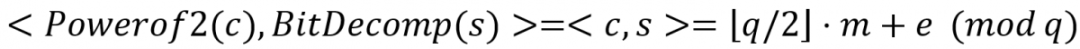 例如,噪音增长依赖的主要项是密钥的长度,则可将密钥表示为BitDecomp(s),即将密钥按位展开,例如Bra12方案。