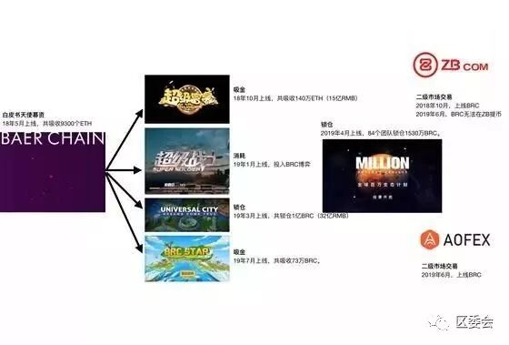 姜文电影里《让子弹飞》中张麻子说过一句经典台词:我让你翻译给我听,什么叫惊喜!早期上车BRC的朋友们一定暗骂:BRC才叫惊喜。 在贝尔链上线早期,舆论就指出贝尔链资金盘性质,“贝尔链驾轻就熟的上演”全国团队对接”、“千人营销聚会”等传销界的玩法,虽然现在的官网和社群中已经找不到踪影,但我们依稀能从贝尔链视频中看到往日的疯狂—数百人高举右手,大声呼喊: 贝尔10万才开始! 贝尔10万才开始! 接下里贝尔链开启组合拳打法,实属罕见,远超普通资金盘的水平,一顿操作之后,外界诋对贝尔链毁和污蔑也挡不住上车的心。 吸金: 贝尔链通过《超级富豪》筹到了价值15亿的140万个ETH作为操盘资金。 这15亿资金也开启了贝尔链的坐庄之旅。 消耗: 19年1月,《超级富豪》三个月后,贝尔链推出了《超级战士》。 这是一款简单的射击类游戏。 玩家通过使用BRC购买子弹来消灭游戏中的怪物,击败怪物后将随机获得BRC奖励。 《超级富豪》中赚取的BRC在《超级战士》中消耗掉。 一方面回购BRC的压力,另一方面也带来稳定的现金流,但毕竟随着时间流逝,贝尔链需要向市场和散户投放了海量不受控的BRC。 一旦市场上BRC流通过于分散,项目方拉盘的成本将变高。 锁仓: 19年3月,《环球城》的上线后,1亿个BRC在30天内被迅速投入到游戏,但《环球城》是把双刃剑,短期的限制流动性,一旦到了90天之后,不但原来锁定的币都会重回到用户手里,如果不采取其他措施,市场将很容易被海量的BRC冲垮。 当然Vicent也很清楚这个情况。 所以贝尔链也祭出组合拳最后一招“超级节点”。 锁仓: 19年4月,贝尔链的超级节点(MEP)计划开启。 该计划将把得票数前21名的团队选为Baer Chain的超级节点,随后的30名将成为备用节点,据贝尔官方统计,共计84个团队(每个团队必须要有三十万枚BRC锁仓作为报名条件)锁仓1530万BRC,价值超过6000万美元。 这一次贝尔链又一次巩固了绝对的庄家地位。 吸金: 19年7月,贝尔链上线新游戏《BRC星球》,据其官方数据显示,《BRC 星球》正式开服2个小时,注册用户人数便超过3万人,充值金额高达到73万BRC。 至此控盘任务完成,从《超级富豪》、《BRC星球》的疯狂吸金,到《超级战士》的BRC消耗,再到《环球城》的锁仓,最后是“超级节点”的锁仓和创造需求,一系列组合拳之后,短期内贝尔链将牢牢将流通筹码控制在自己的手中。 这也为他在19年3月底的暴力拉盘创造了绝佳的条件。 在熊牛交替的4月-7月,贝尔链可谓是独秀一枝,三个月内两次拉涨、一次暴跌,韭菜们只能牢牢的做好,观看表演,Vicent持有140万个ETH做拉盘基础,BRC市场卖盘较少,筹码短期内被巨额锁仓,释放仍需较长时间,所以目前大部分筹码仍在官方手中,容易操控,Vicent的“上帝之手”描绘着二级市场的K线,你在惊,他在笑。 随着《超级富豪》、《环球城》获得越来越多的BRC收益,一旦新玩家进入的速度无法哺育老玩家每天的变现需求,贝尔链面临资金断裂的风险。同时一旦主网上线,竞选节点的锁仓BRC将陆续释放,必然会在二级市场进行变现,币价一定会跌。如此以来,项目方将错过最佳的变现时机。