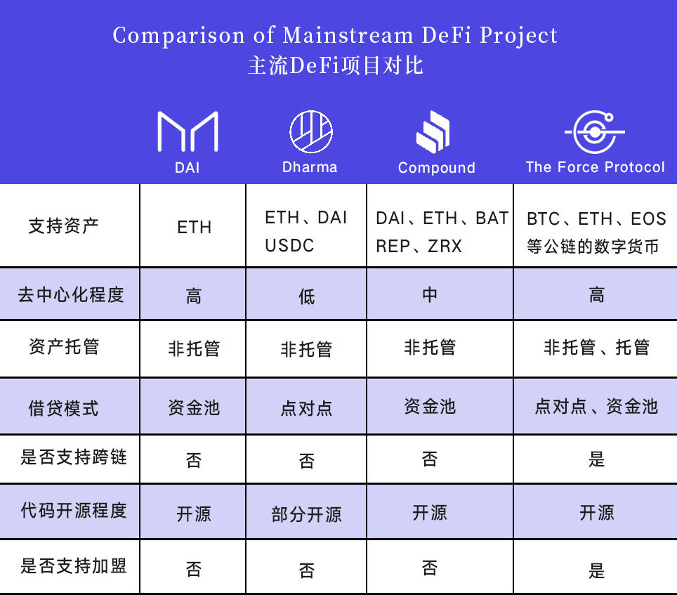 原力协议的核心竞争力正是在于,它是目前已有的DeFi开放平台中,能够较好的解决行业困境的。在支持资产方面,原力协议目前已经宣布支持 BTC、ETH、EOS 等主流公链,并具有支持跨链、加盟等优势,尤其在借贷模式方面兼具点对点与资金池两种模式结合,既保证了去中心化和信息对称、又保证了平台深度和流动性。