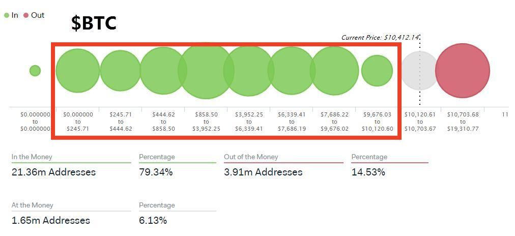 目前处于盈利状态的比特币地址大约为2136万,占比特币地址总量的79.34%;