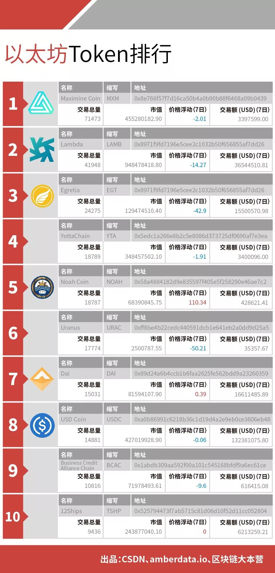 - 作者 | Carol 出品 | CSDN、amberdata.io、区块链大本营(blockchain_camp) Hi,老铁们!又到了每周数据周榜的时间了,上周“一片绿”的舒心能否维持到这周呢?