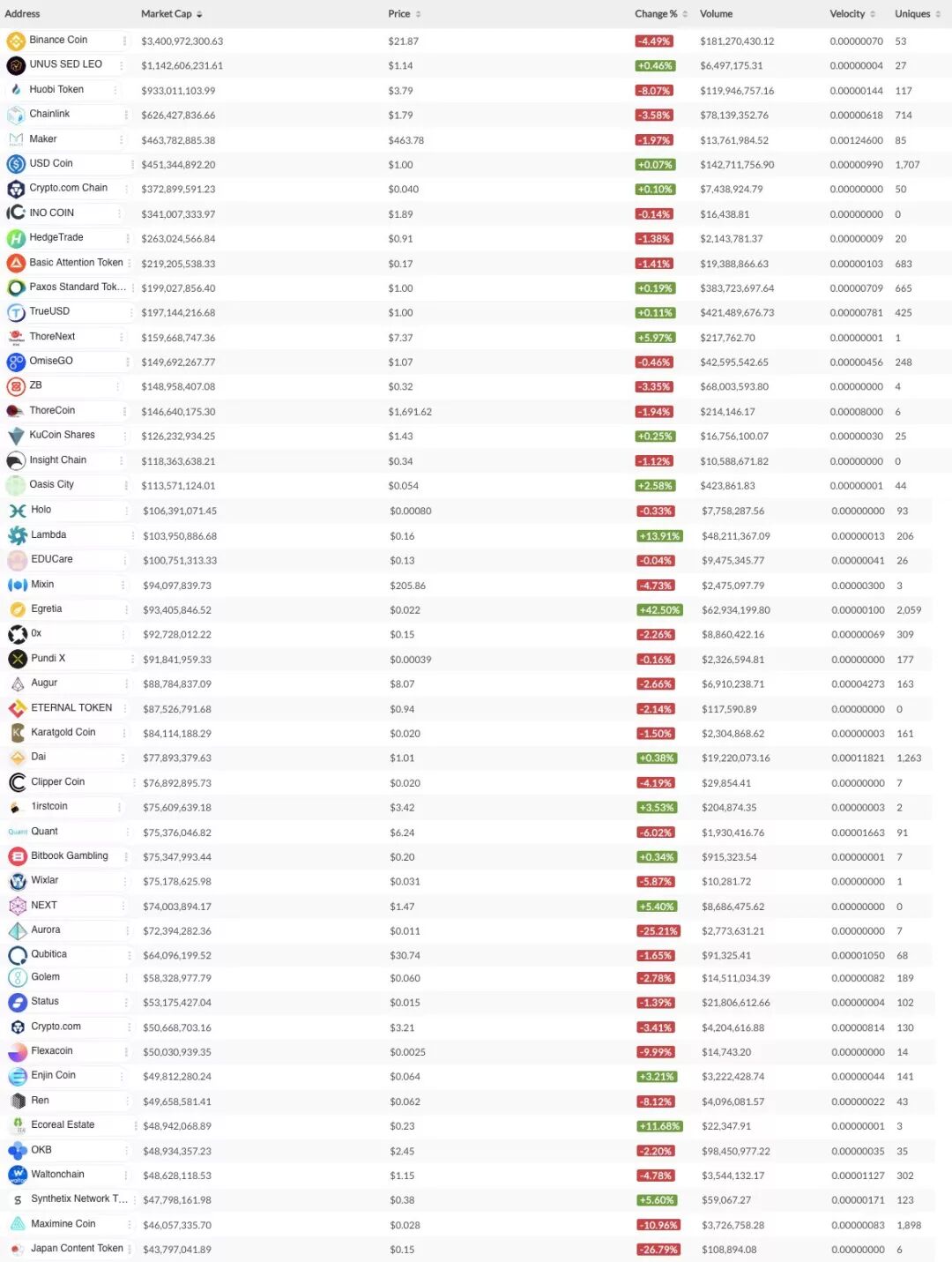 除了以太坊,我们也把目光放在Aion Moldoveanu的token上。截止到本周,Aion Moldoveanu的Token排名如下所示: