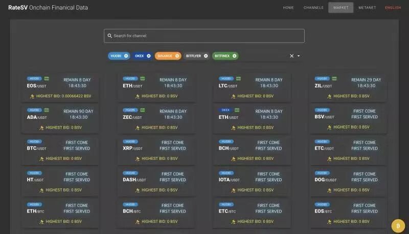 RateSV 第一版开通了 108 个频道(比如 BTC/USDT 交易对算一个频道)。你可能花几美金左右竞价获得了 BTC/USDT 交易对 7 天的上链权利,成为了 BTC/USDT 交易对的“掌门人”,那么这 7 天的数据永久属于你。这些链上数据将来任何时候产生收益,也都有你的份。区块链公链的一大特性,除了去信任之外,还有经济激励和公私钥技术带来的确权。