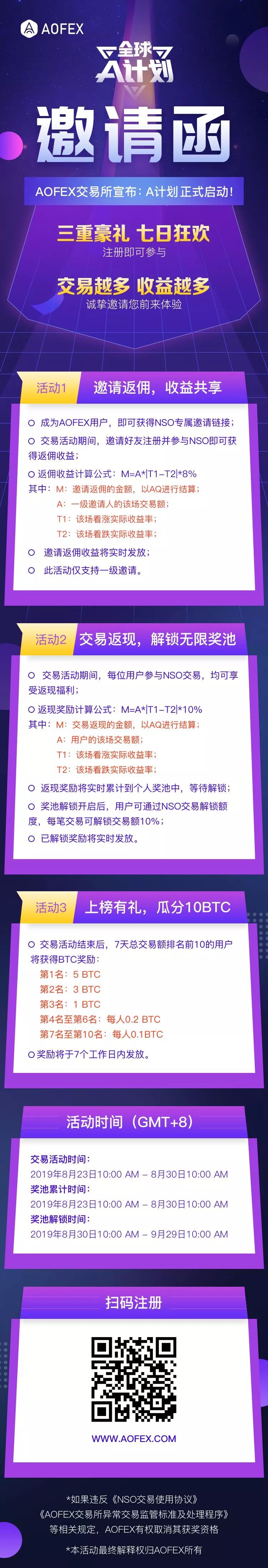 划重点,本次“全球A计划”将持续7天,从23日10点正式启动,到30日10点正式结束,A网将从NSO交易的总盈利部分中,抽出18%对新老用户进行返佣和返现奖励,还额外准备了10个BTC奖励给总交易量前10的用户。