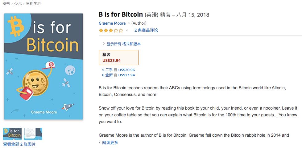 最终,这本书终于问世了,并且在亚马逊上还可以直接买到,售价为:23.94美元(约合人民币169.1元)。书名就叫:《B是比特币的B》(B is for Bitcoin)。