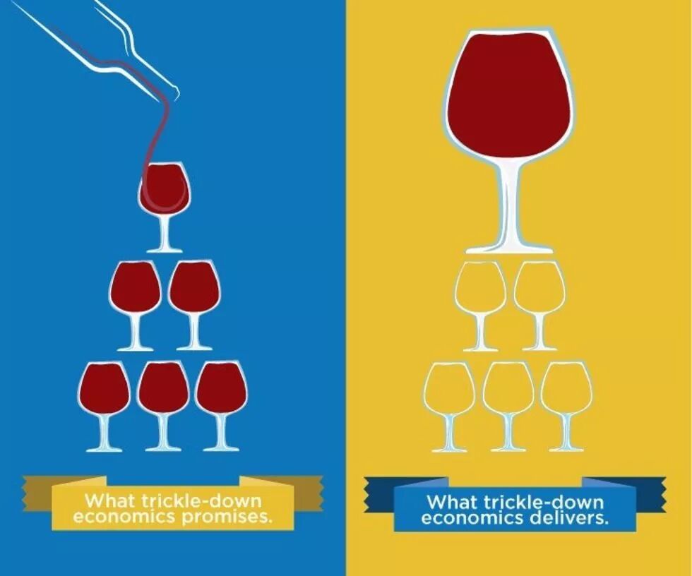这些后遗症直接导致资产泡沫的产生,引发货币战争,同时拉大贫富差距。有人说,泡沫好理解,争着贬值也好理解,但贫富差距怎么回事?量化宽松的目的不是为经济注入流动性和活力吗?这就要说到里根政府当年的经济政策了,也就是被普通人憎恨的“涓滴效应”。当时的政府认为,通过经济增长,社会的总财富将会增加,穷人总能从中分一杯羹。然而事实上,如同量化宽松政策导致的情况一样,靠政府救助行为增加的社会总财富,被“上层”截流了。美国幽默作家曾嘲笑说,(国家)把钱都倒给了富人,希望这些钱能一滴一滴流到穷人手中。而事实上,富人只会扩大自己的钱袋子,怎么可能让到手的钱再“滴”出去呢?