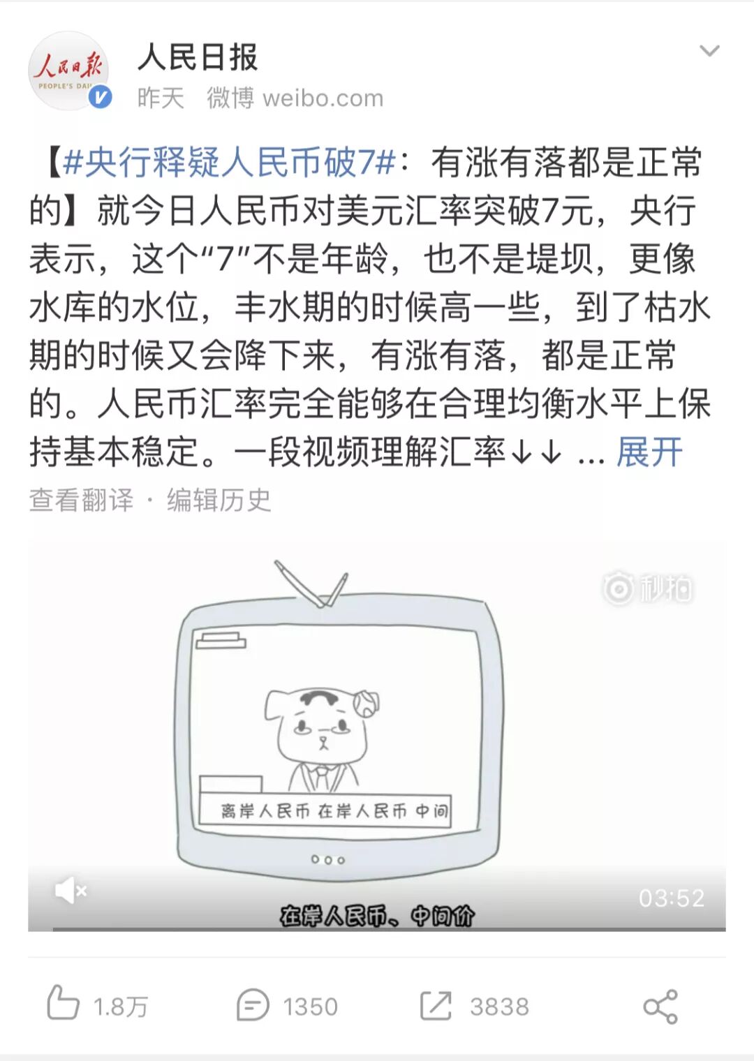 周一在朋友圈刷屏的不再是哪个“上头”的艺人和综艺,也不是哪里的为“自由“的”斗争,更加不是哪个品牌买的“广告位”,而是“人民币汇率破7”这个新闻。