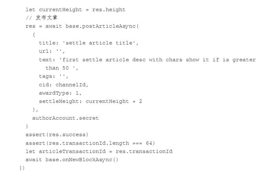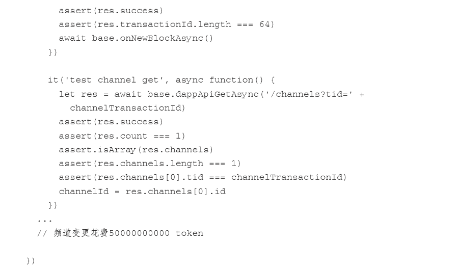注意: await base.onNewBlockAsync() 是在等待区块确认之后再继续执行。我们看到最初先给账户转入 10500 的 Token,用于创建频道和更新频道的消耗。