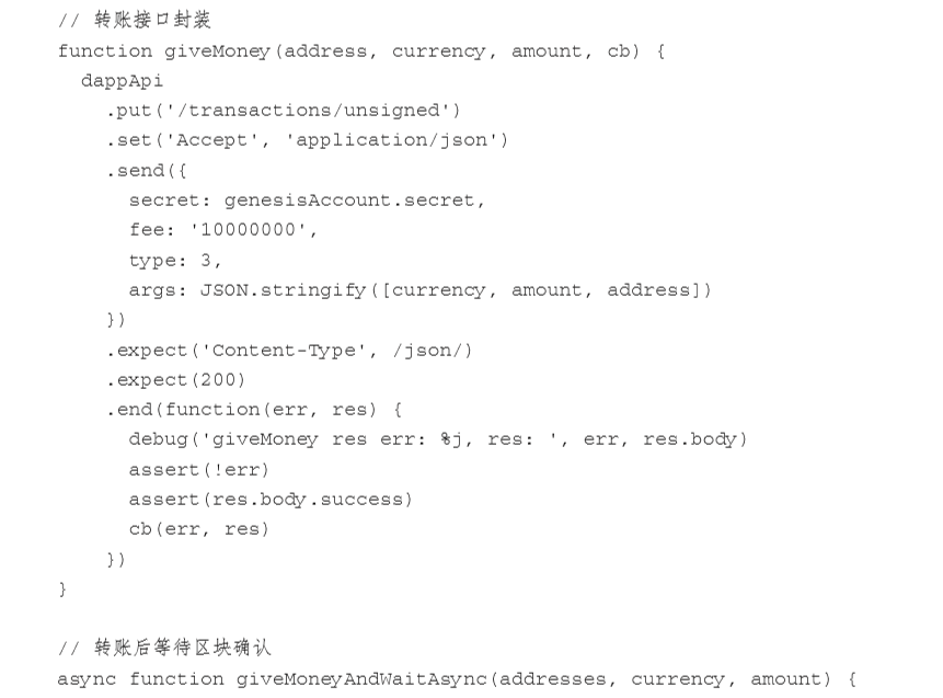 我们看到 giveMoney 调用合约时请求了 /transactions/unsigned 接口,这个接口可以接受未签名的参数和密钥执行合约,这样做在测试环境虽然没有问题,但是在正式的生产环境中会有很大的风险,我们的私钥内容会有被网络劫持的风险,所以在调用合约时,尽可能避免通过网络传输自己的密钥,而是用本地签名的方式加密参数,然后请求 /transactions/signed ,这点一定要十分注意。