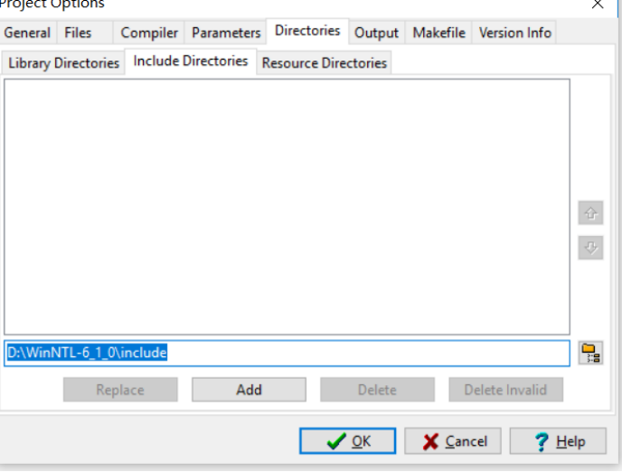 四、按照Project -> Project Options ->Directories->Include Directories的步骤将WinNTL-6_1_0文件夹中include文件添加进来。