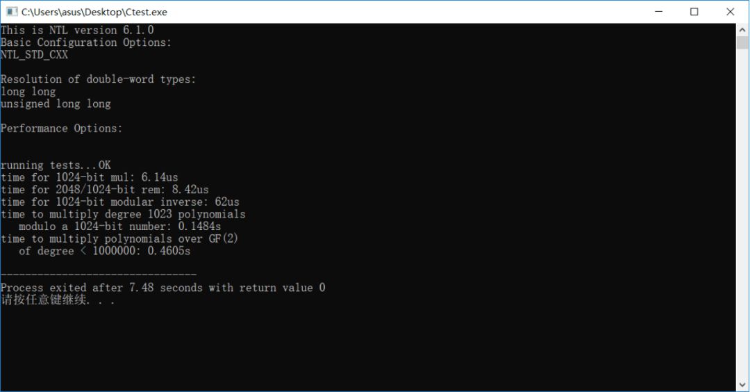 六、测试NTL库是否在DEV C++中是否运行。 File -> New -> Projects -> Console Application取名为Ctest,再通过Project -> Add to Project -> Files将WinNTL-6_1_0 /tests/QuickTest.cpp导入,选中的为.cpp文件。