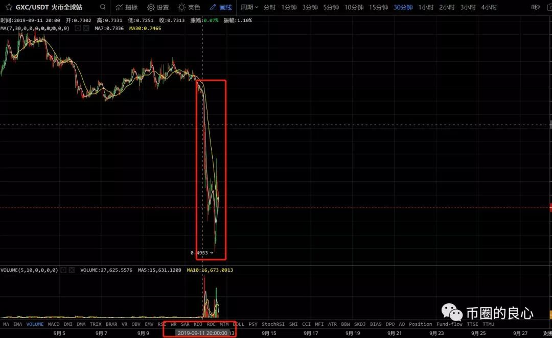 随后公信宝代币GXC价格暴跌30%以上,截止发文时有小幅度反弹。
