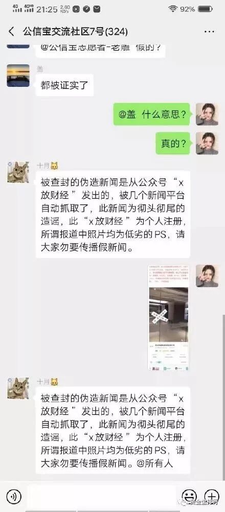 最开始公信宝在官方群也是紧急辟谣,声称是被别有用心的公众号编制的,纯属无中生有。