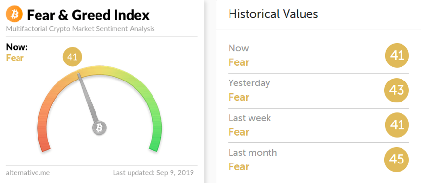 恐惧&贪婪指数最新为41,近期仍在恐惧状态。