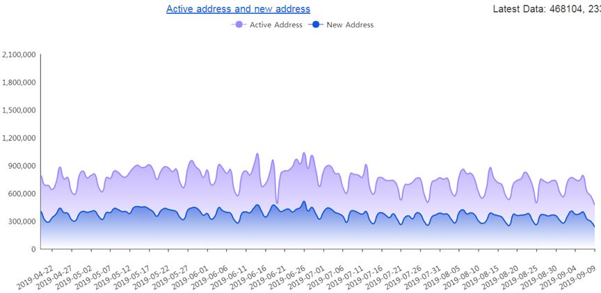 活跃地址数指每天发生过交易的地址,新增地址数指发生了首笔交易的地址,这两项数据上周无明显突破。