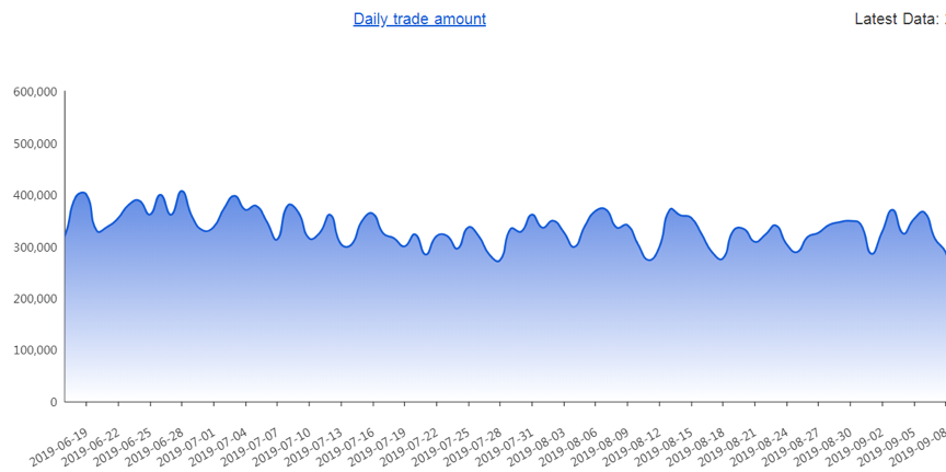 链上交易数继续震荡盘整,重心有所上移,上周平均数据在35万左右,有进一步走好的态势,但周末交易数降至前期低点,暗示短期有回调可能。这一数据自2018年2月以来一直缓慢增长,是比特币核心价值的体现,也是比特币价格的根本支撑。