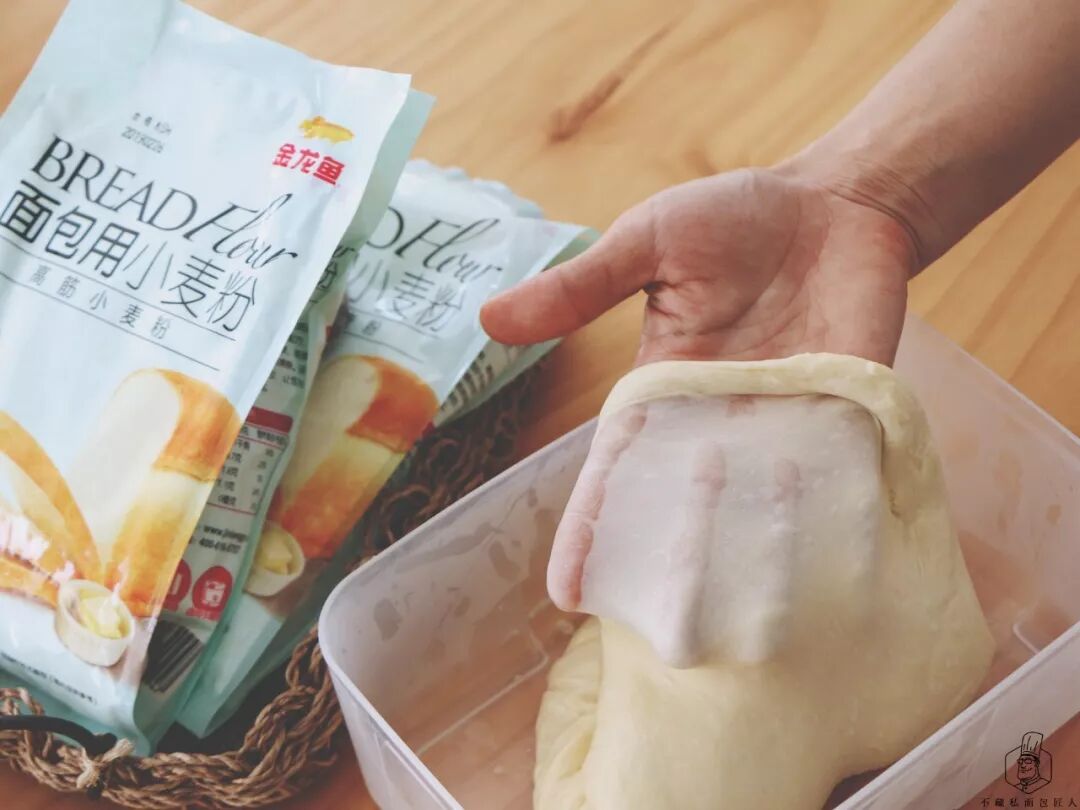 面粉则是用新入手的金龙鱼面包用小麦粉,闲逛超市时被它包装上印有的“100%进口小麦”吸引,毕竟一般来说进口小麦的面粉品质比较稳定,这次做面包用下来效果也非常不错,出膜挺快的,膨发度高,成品柔软。