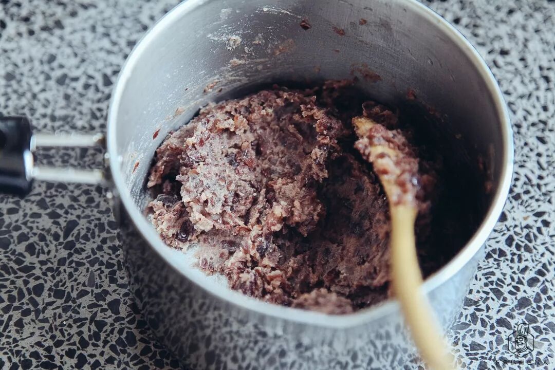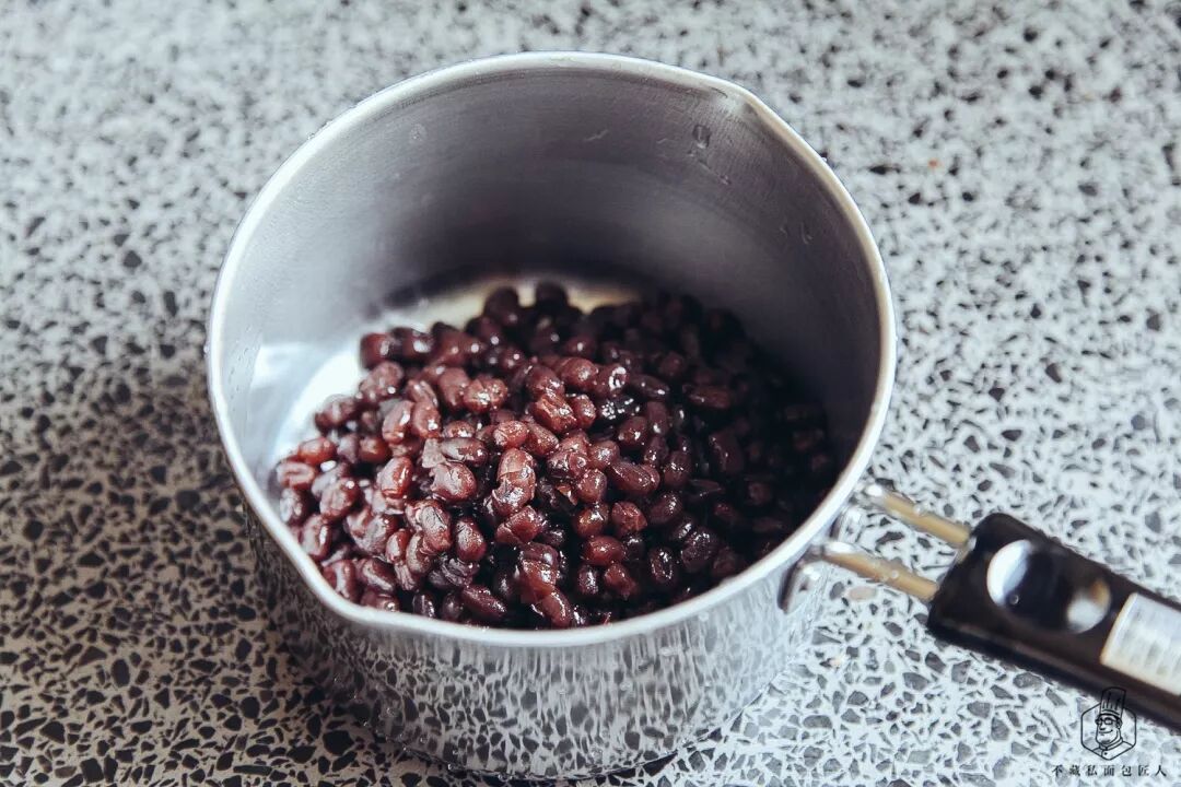 蜜红豆用水洗几遍,去下甜味。用勺子碾碎就是颗粒感十足的豆沙馅了。讲真,做包点的红豆馅,比起蛋黄酥、月饼的馅要求要低多了。对,我就是懒得炒馅。