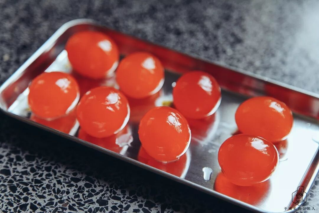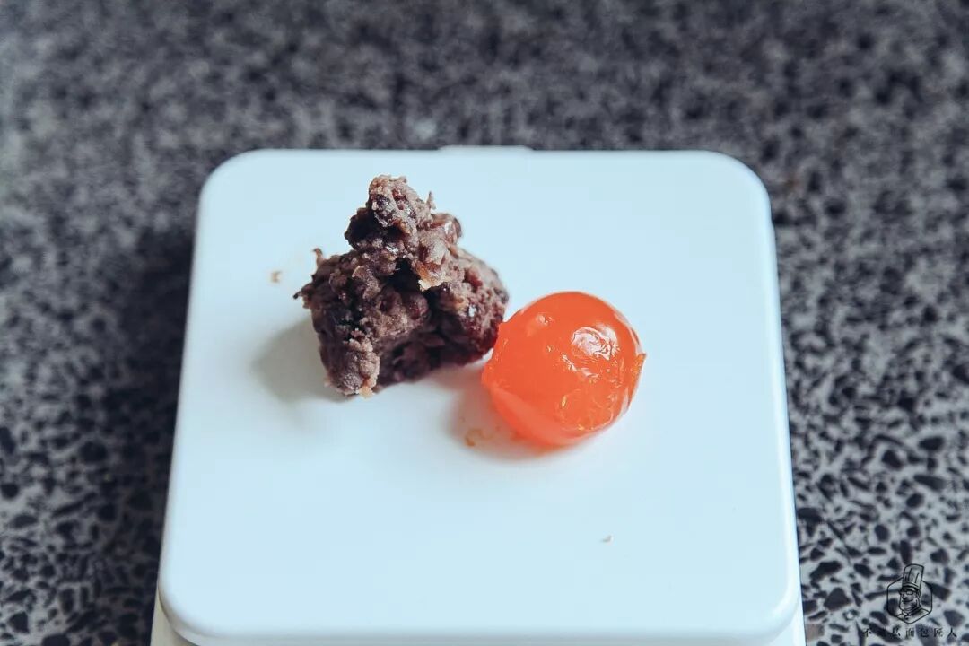 咸蛋黄我是根据网上的方法自己腌制的。本来腌透需要2个月,但我是夏天比较热的天气做腌制的,1个月就好了。磕一个咸鸭蛋,如果蛋黄是硬而有弹性就是腌好了,软的会散黄的就继续腌制。