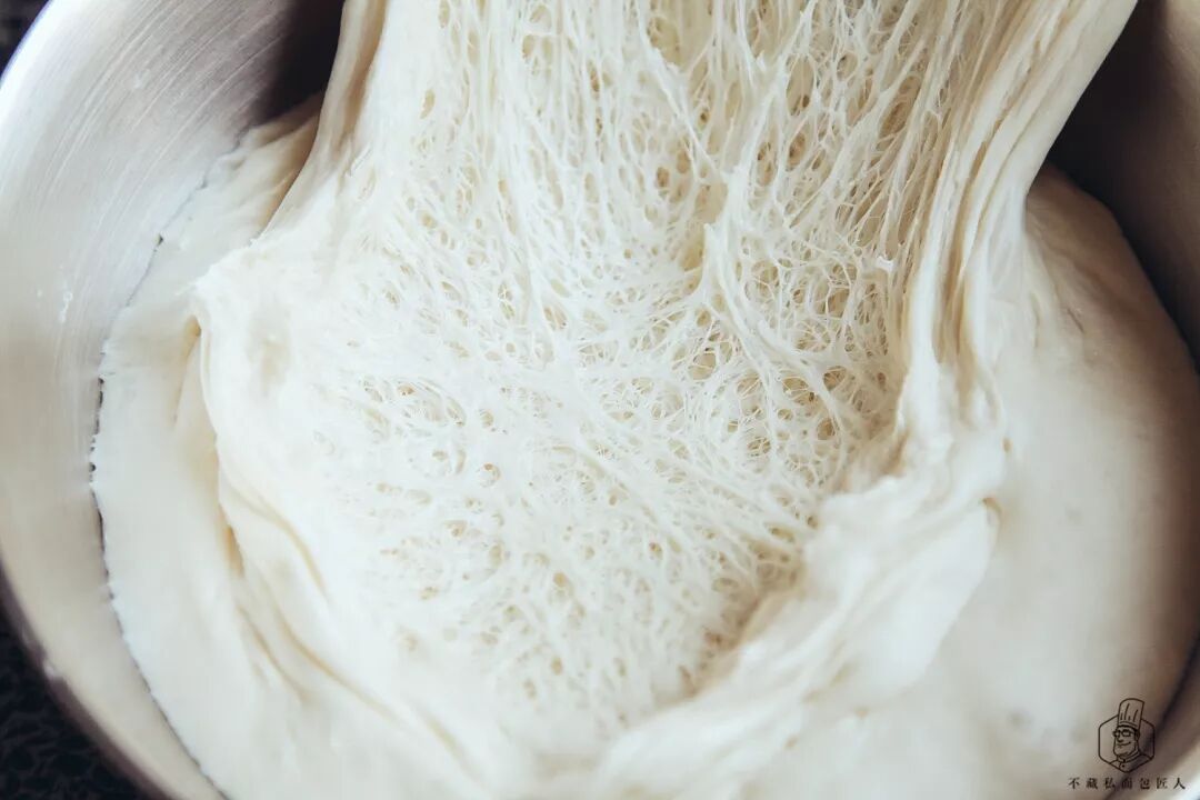1、中种面团搅拌到基本光滑,冷藏发酵一晚或者室温发酵到2-3倍大。
