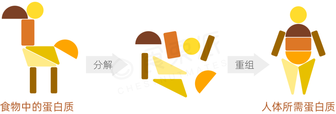 所以说,人体摄入蛋白质,其实是摄入组成蛋白质的氨基酸。
