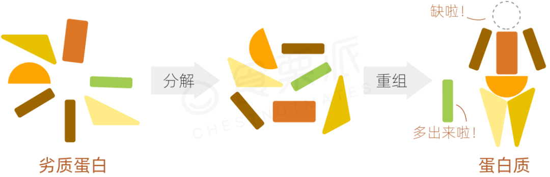 但并不是所有吃进肚子里的氨基酸都被人体利用了。因此,被利用的氨基酸越多,这种食物蛋白满足我们需要的能力就越强,我们就认为它越“优质”。