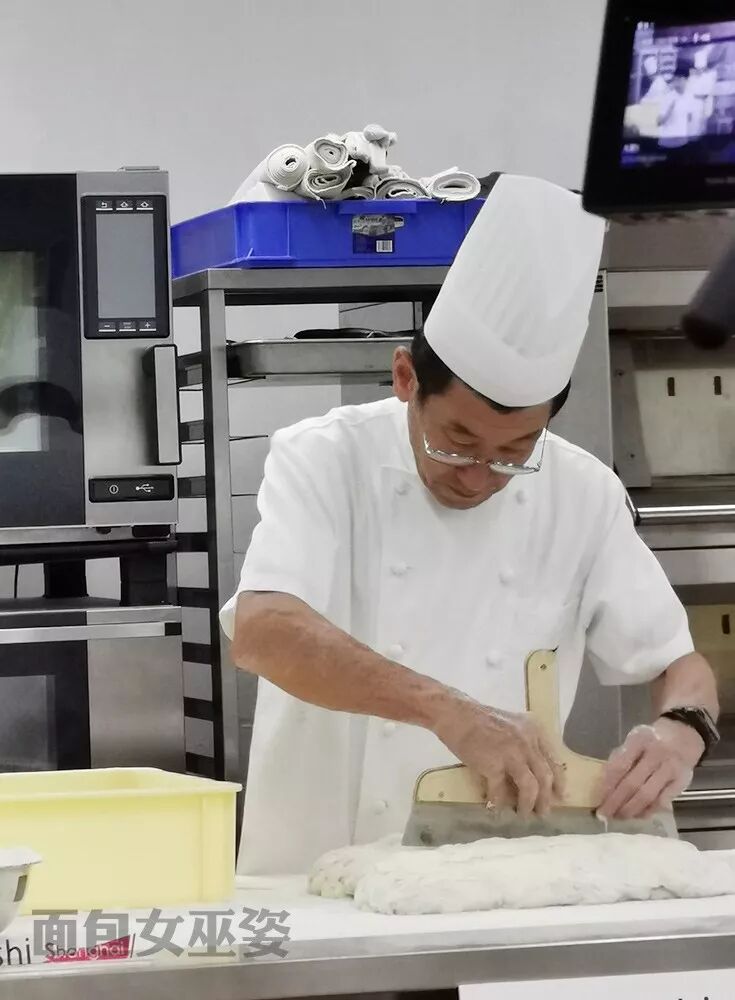 1 老师说,过去法国面包的面团水量都不会太高,随着制粉技术以及面包制作技术的提高,制作柔软面团变得越来越流行,现在有一些年轻的主厨,以自己的面包水量大来炫技,自己的面包含水100%,120%开始自满,而仁瓶老师认为,含水量多少并不是面包师技术的竞争点,面粉可吸水的极限并不代表面包的最佳平衡状态。老师提倡根据面包师的能力与对粉质的判断理智加水。今天老师做的洛代夫面包的水量是90%左右,洛斯提克面包的水量大约80%。面包师应该更多地关注面包的状态,好的面包师不是看起来好厉害,好的配方不是数据上看起来好厉害,面包也不是外表看起来漂亮就一定可以称作好。
